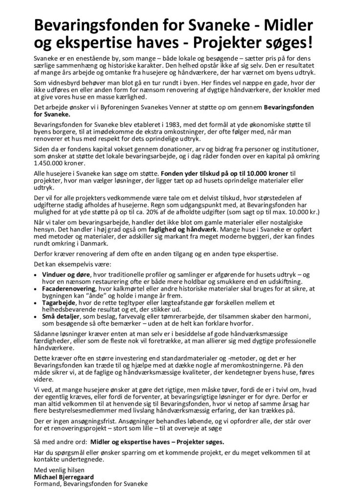 Og det ses jo tydeligt i Svanekes bybillede, at man gennem mange år har været sig bevidst om, at byens historiske miljø ikke over tid har mistet sin særlige atmosfære og liv.