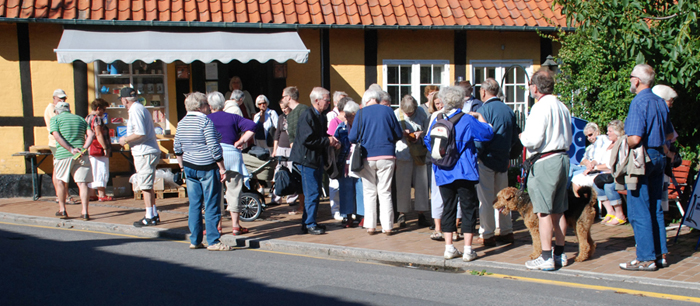 | Efter at de forskellige ting var samlet sammen og gjort i stand, begyndte indretningen af Købmandshandelen, Det var lidt af et puslespil, idet intentionerne var at få butikken indrettet som i gamle dage og samtidig at få flere varer på hylderne end dengang. Mette og jeg havde dog et klart billede i hovedet, idet vi begge fra barns ben havde bevæget os i en Købmandshandel. Mette i Søllings Købmandshandel og jeg i mine forældres Købmandshandel på den lille ø Drejø i det Sydfynske Øhav. Vi havde begge kendskab til gamle tiders købmandsskikke, hvor mel og gryn blev afvejet, saltsilden trukket op af tønden, sennep og sirup vejet af i de glas folk selv medbragte - petroleum, reb og tjære i bagbutikken o.s.v.. Men alt dette kunne selvfølgelig ikke overføres til det lille lokale og ej heller med behørig hensyntagen nuværende lovgivning omkring opbevaring af Levnedsmidler. I det lille lokale blev der dog plads til både 3 diske, hylder, kasseapparat og kaffemølle. Lappesko med cykeldæk blev ophængt under loftet og de gamle lamper kom til deres ret. Varer kom på hylderne og 3. maj 2005 åbnede butikken med den usikkerhed, der lå i, om den ville slå an. Vi kalkulerede dengang med en ret beskeden omsætning, som dog heldigvis har vist sig at skulle justeres i positiv retning. Jeg har nu stået for butikken i 6 år og det har været en stor tilfredsstillelse og glæde at se den vokse og blive velbesøgt af faste kunder fra byen, oplandet, turistkunder fra hele Danmark, ja, endda kunder fra hele verden. Butikken er således blevet en attraktion for turisterhvervet. I sommertiden har vi talt til over 700 personer ind og ud i den gamle butik. Jeg har nu besluttet at stoppe, idet jeg netop har fundet en værdig afløser i Susanne Kristiansen, der brænder for den gamle butik, for de bornholmske produkter og økologi. Susanne vil fortsætte i samme ånd som nu, men tager også nye ideer med ind i billedet. Jeg vil her på falderebet benytte lejligheden til at sige en stor tak til butikkens kunder - uden dem, var der ingen butik! Samtidig tak for et ualmindeligt godt samarbejde med leverandører og byens øvrige butikker. Det varmer meget med den positive opbakning, der har været igennem de 6 år. Og ikke mindst tak til de medarbejdere, der har hjulpet med en god service og kreative impulser til udvikling af det, butikken står for i dag. Jeg vil også rette et tak Mette og Søllings Gaard for den tillid, der har været vist mig hele vejen igennem. Til slut Held og Lykke til Susanne med ønske om, at der fortsat bakkes op om byens gamle Købmandshandel. Kærlig hilsen til alle Kirstine . |